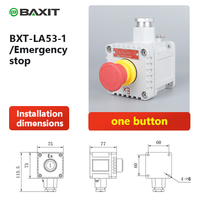 | زر واحد + إيقاف الطوارئ | AC220/380 | 10 | سبيكة ألومنيوم | G3/4″ | ⌀9-14 | Exde IICT6 Gb | |